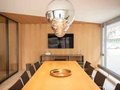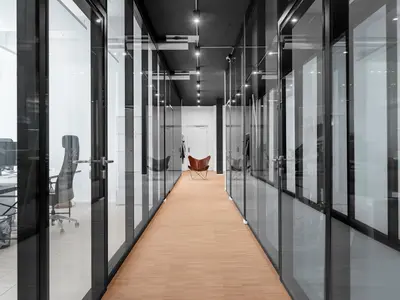 Für die FE Agentur AG war klar: Die Glastrennwände sollten millimetergenau zur Akustikdecke und Holzverkleidung passen – ohne sichtbare Kompromisse. Uniska entwickelte dafür individuelle Spezialanschlüsse und eine Tür-Sonderlösung in Structural Glazing mit 45 dB Schallschutz. Das Zusammenspiel von Design, Funktion und Präzision wurde zum Markenzeichen dieses lichtdurchfluteten Büros.