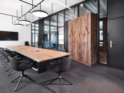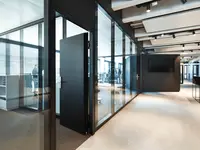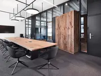 Offene und transparente Atmosphäre: mittels raumhohen Glastrennwänden und multifunktionalen Kuben.