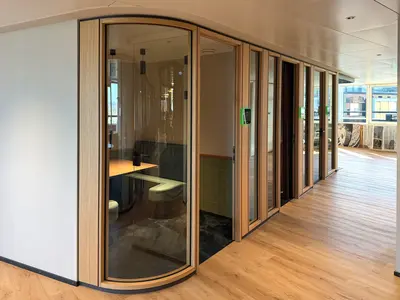 Harmonische Raumführung durch Glasradien und gebürstete Eiche